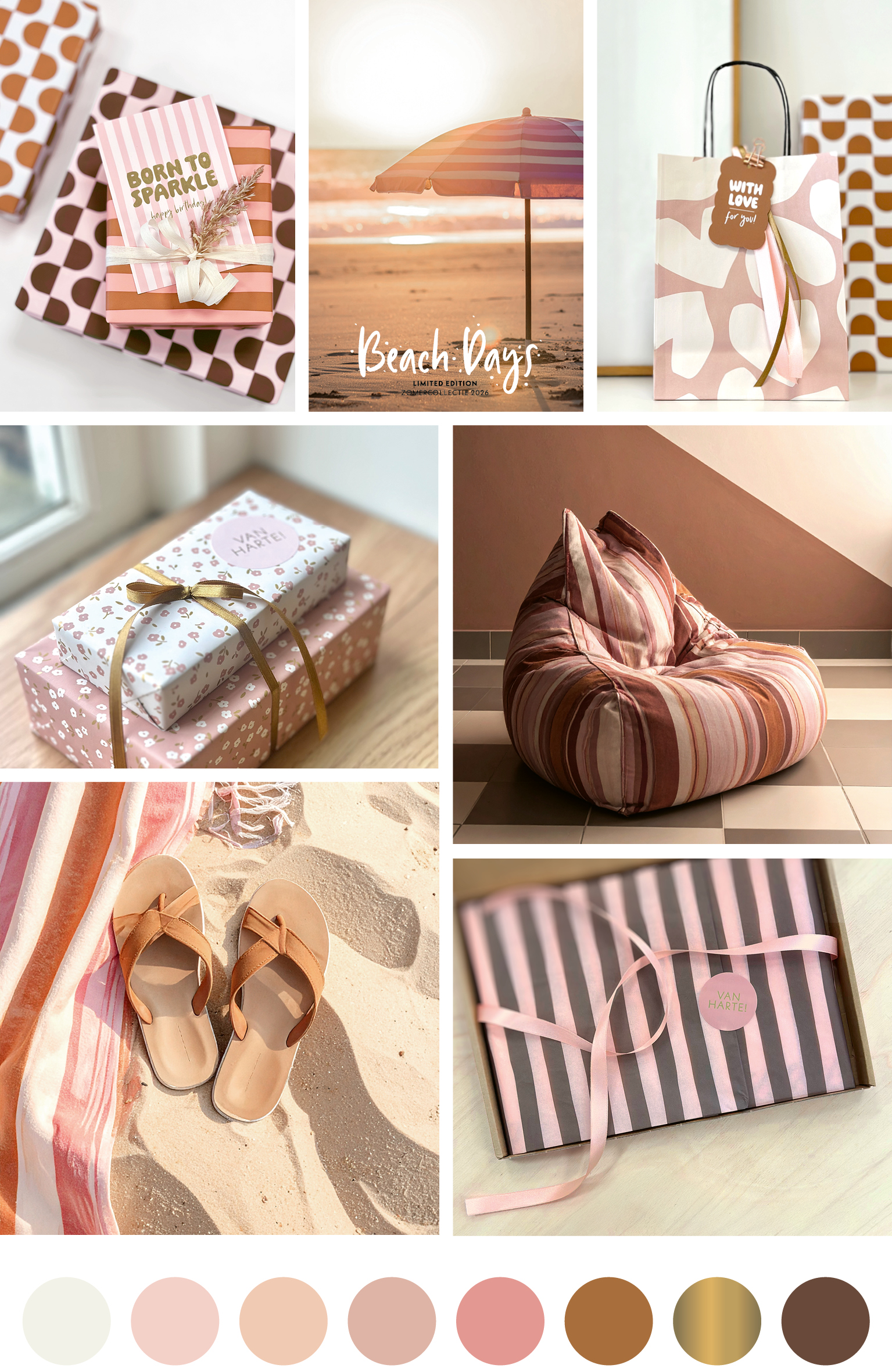 Onze moodboards laten zien hoe alles samenkomt en geven inspiratie voor combinaties en leuke inpakideeën. Zo maken we collecties die niet alleen mooi zijn om te zien, maar ook uitnodigen om te ontdekken, combineren en zelf creatief mee aan de slag te gaan.