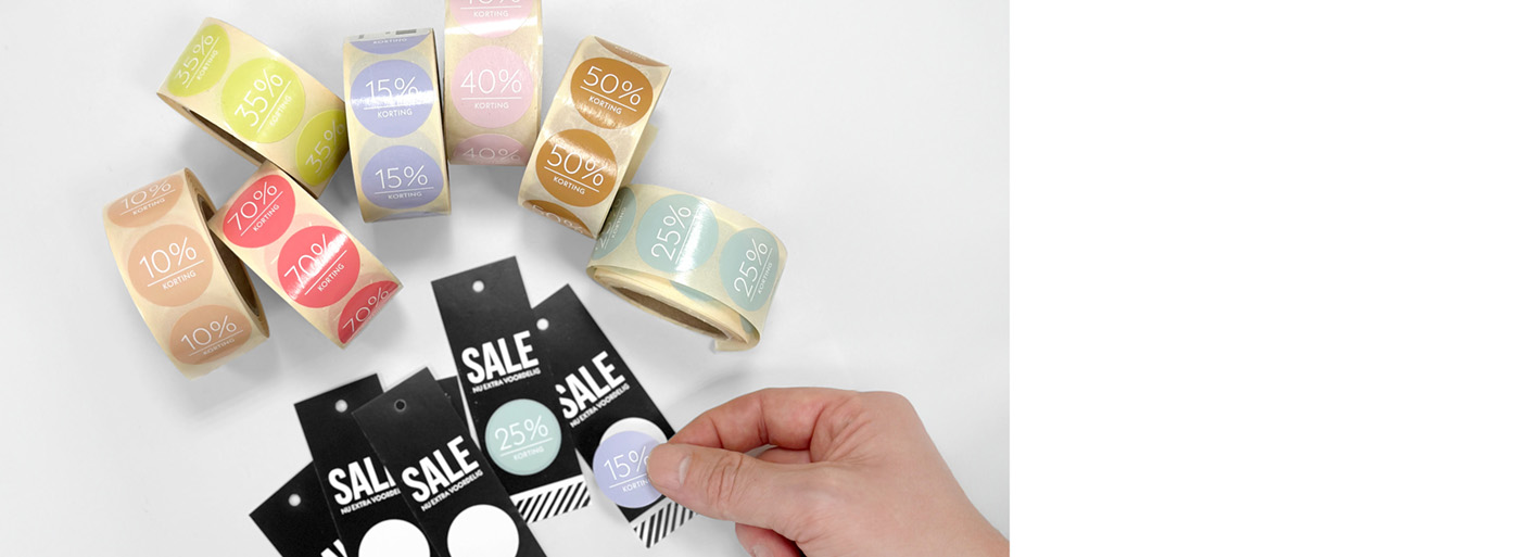 Wil jij de sale in jouw winkel stijlvol en goed inzetten? Prijs dan jouw artikelen af met deze prachtige kortingsstickers en kortingslabels. Je kunt ze afzonderlijk van elkaar gebruiken. Maar ze zijn ook perfect te combineren.