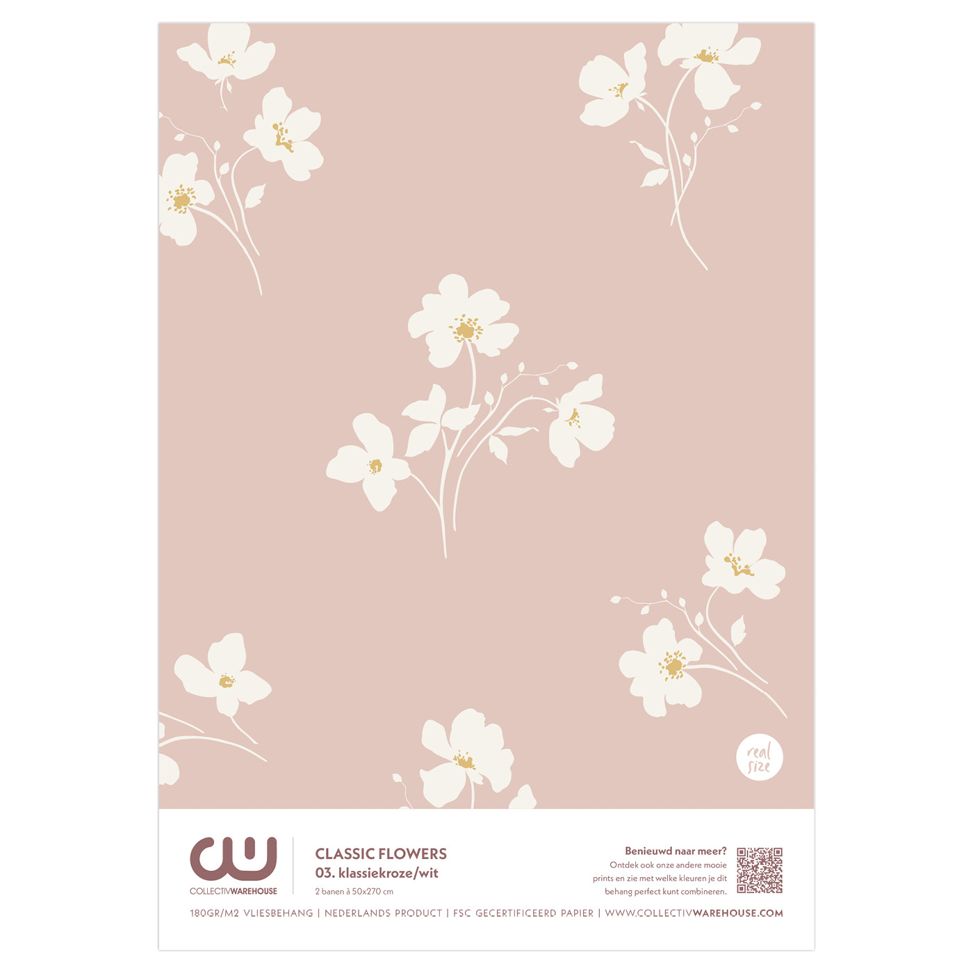 A4 behangstaal Classic Flowers 03. klassiekroze/wit