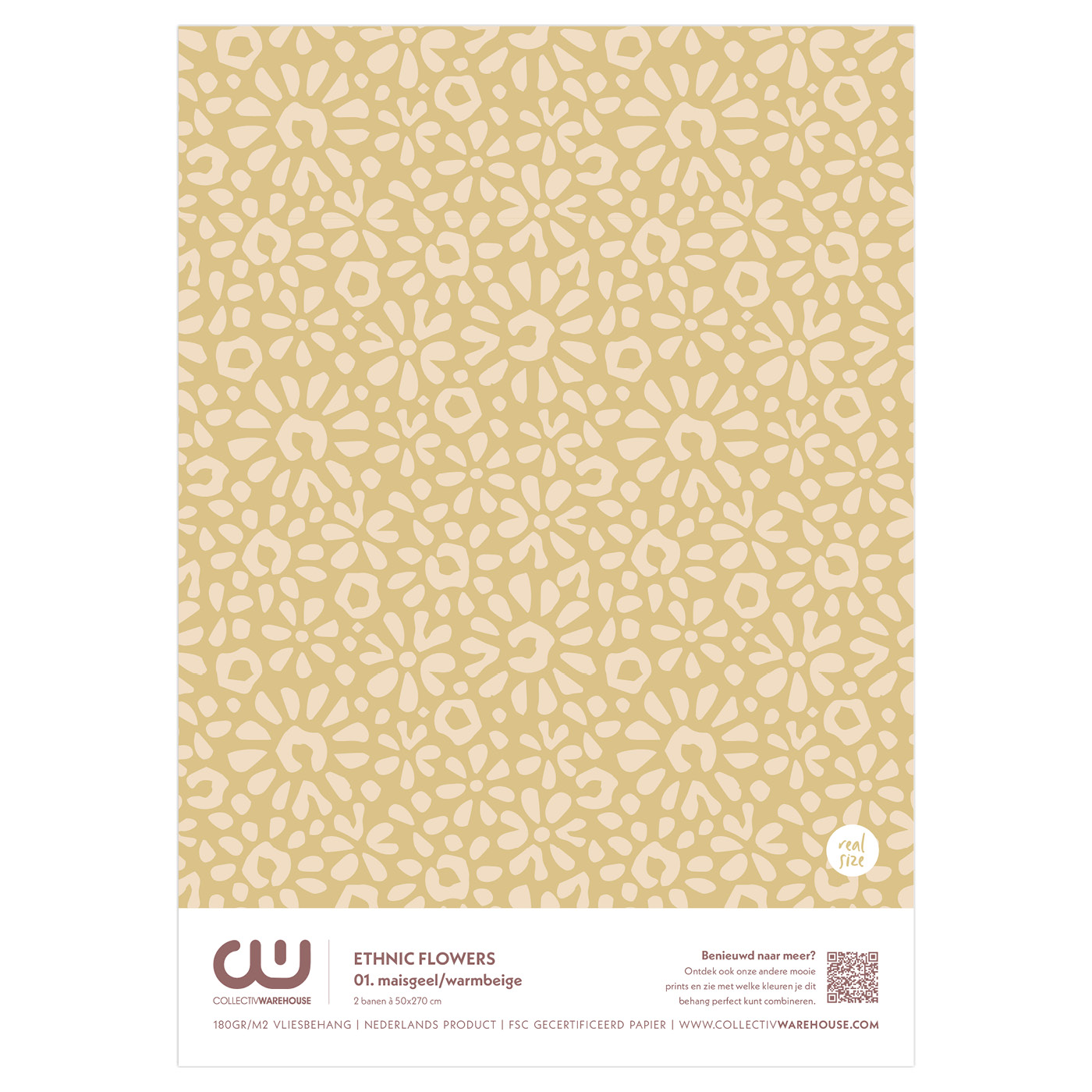 A4 behangstaal Ethnic Flowers 01. maisgeel/warmbeige