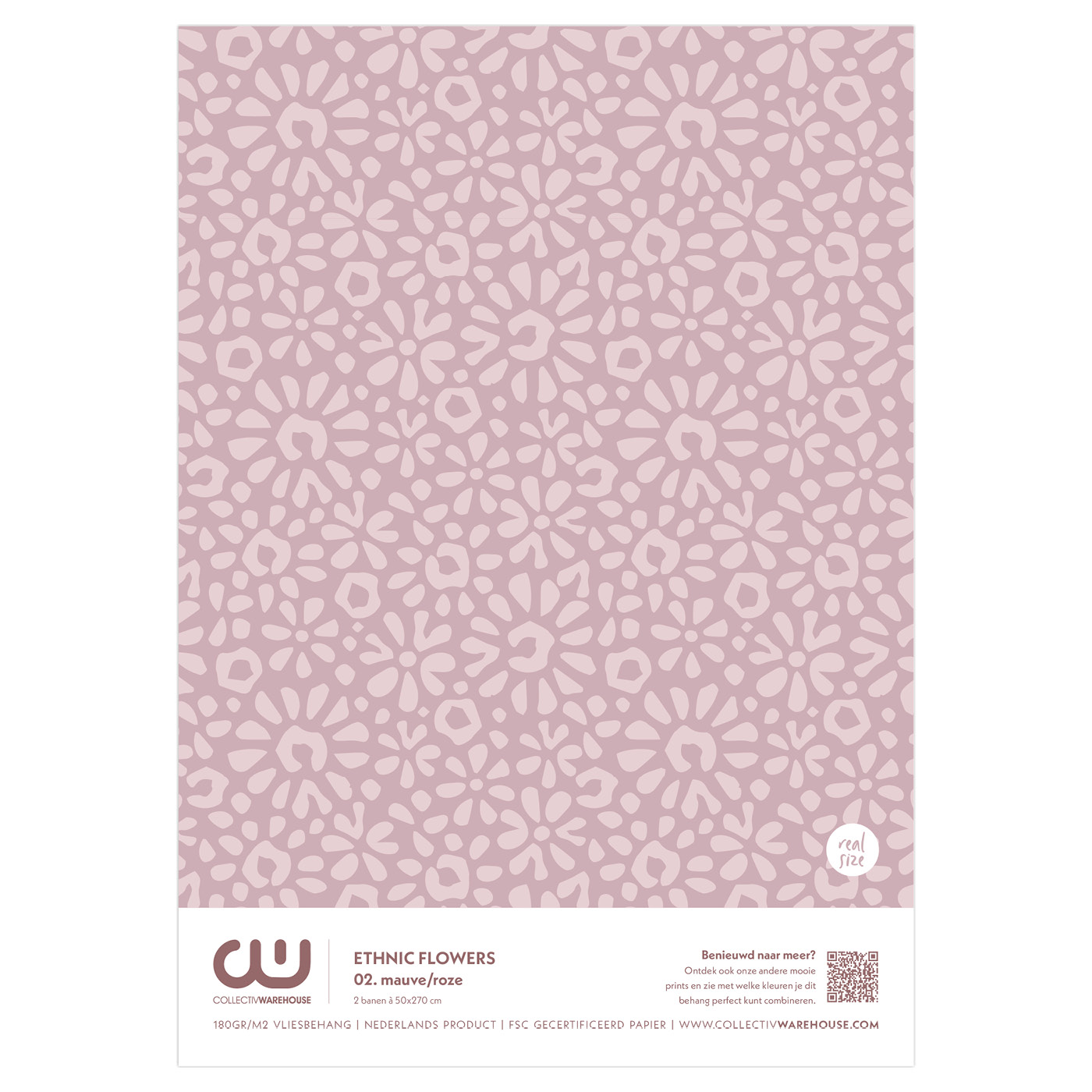 A4 behangstaal Ethnic Flowers 02. mauve/roze