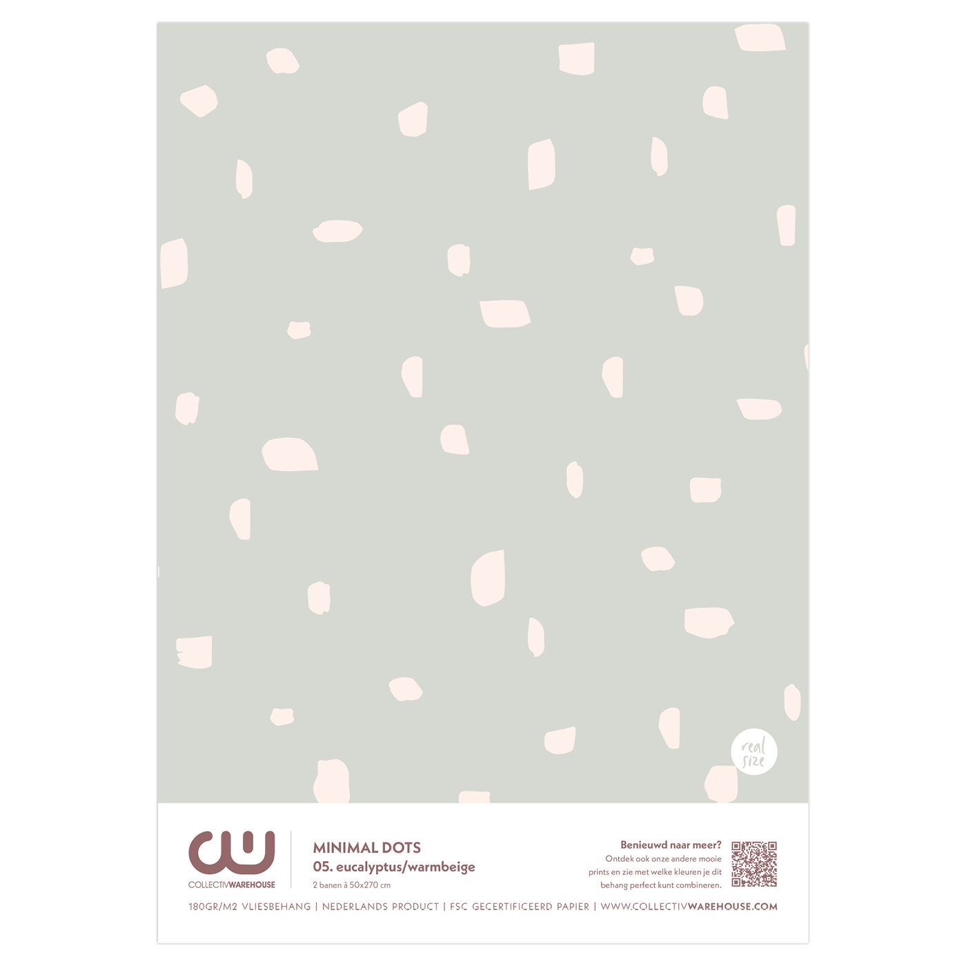 A4 behangstaal Minimal Dots 05. eucalyptus/warmbeige