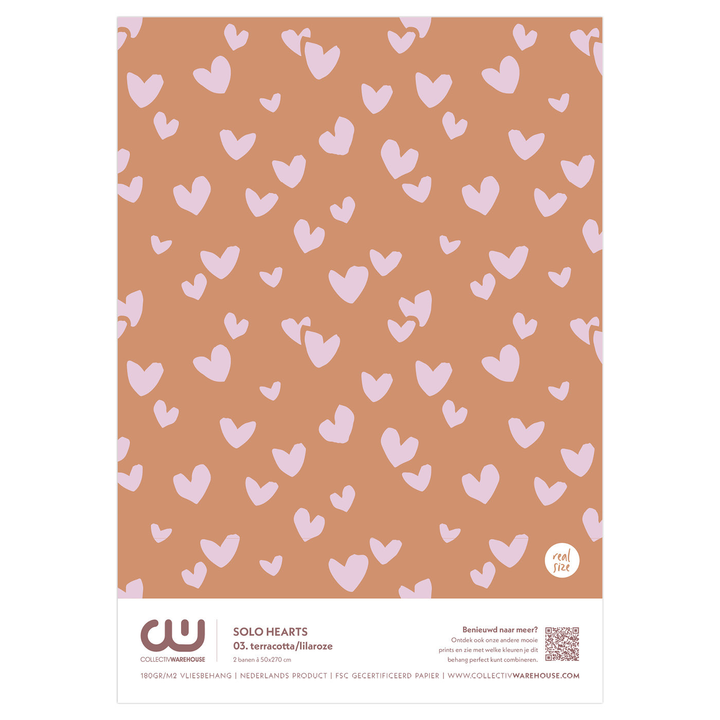 A4 behangstaal Solo Hearts 03. terracotta/lilaroze