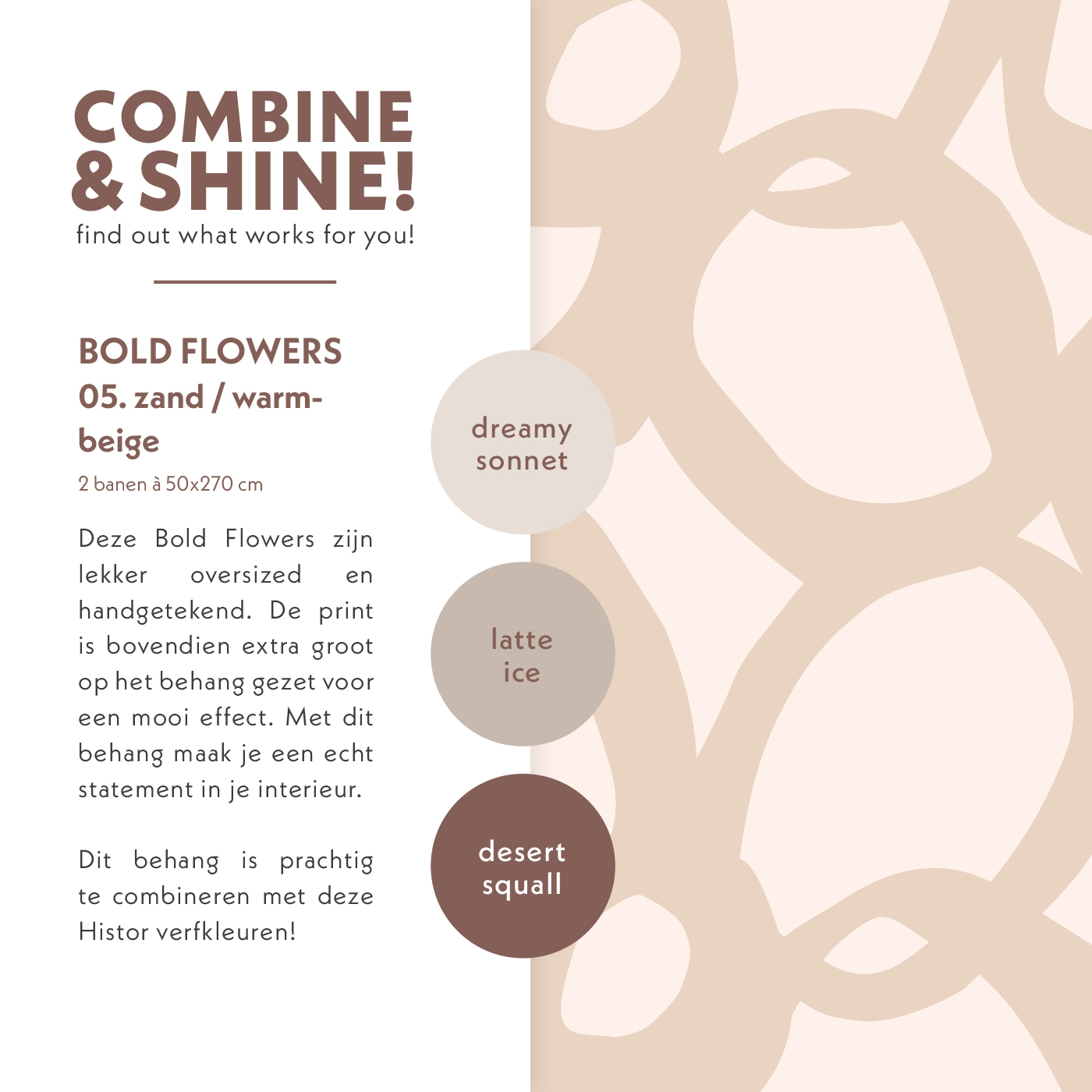Deze Bold Flowers zijn lekker oversized en handgetekend. De print is bovendien extra groot op het behang gezet voor een mooi effect. Met dit behang maak je een echt statement in je interieur. Wil je dit behang combineren met gekleurde wanden? Bekijk dan onze kleursuggesties in de beeldencarroussel.