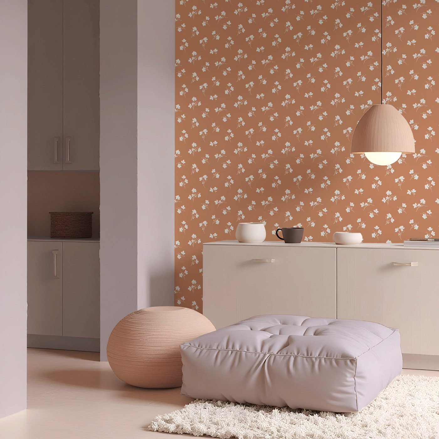 Behang Classic Flowers 02. terracotta/wit