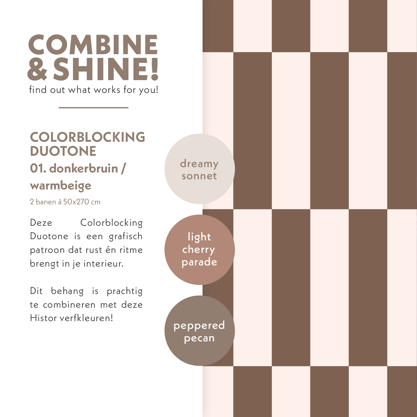 Behang Colorblocking duotone 01. donkerbruin/warmbeige
