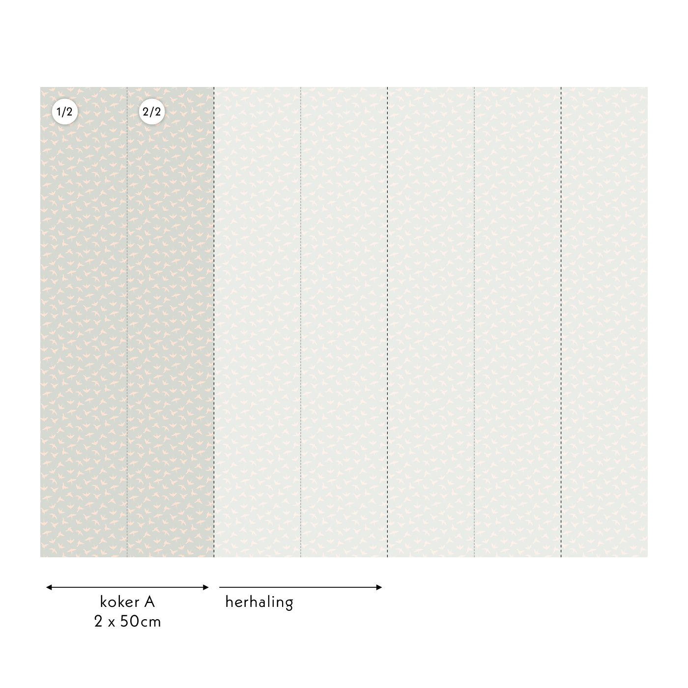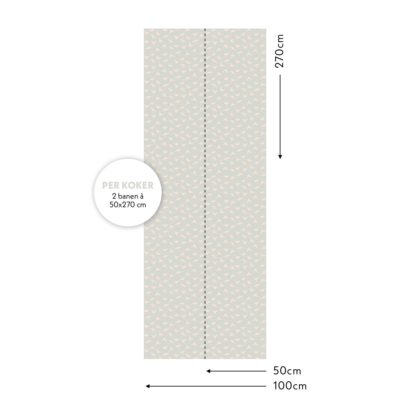 Iedere meter bestaat uit twee banen van 50cm breed en 270cm hoog. De kokers waarin de banen zitten zijn gemarkeerd met letters voor de opeenvolgende banen. Plak de banen naast elkaar voor een perfect naadloos en doorlopend patroon.