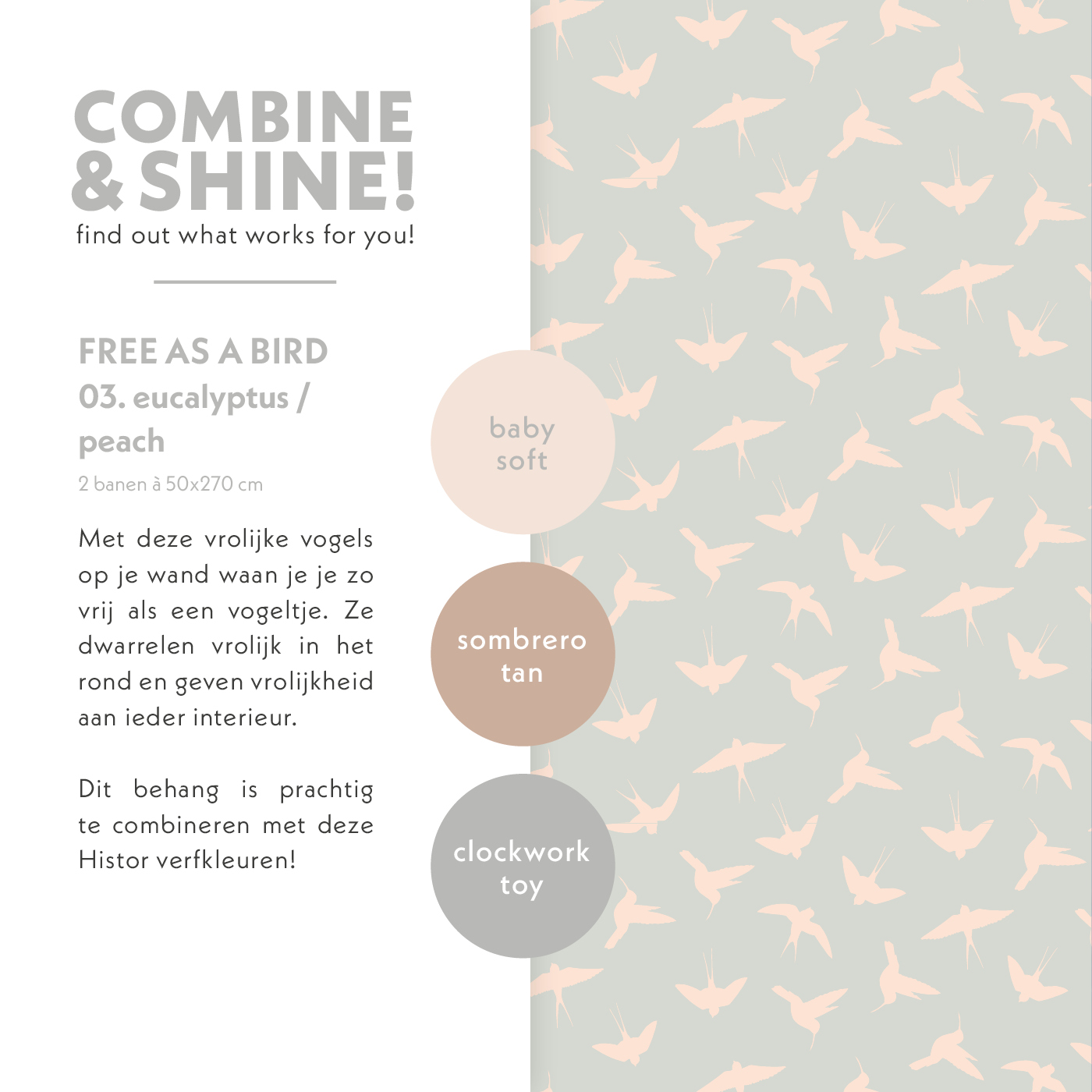 Behang Free as a Bird 03. eucalyptus/peach