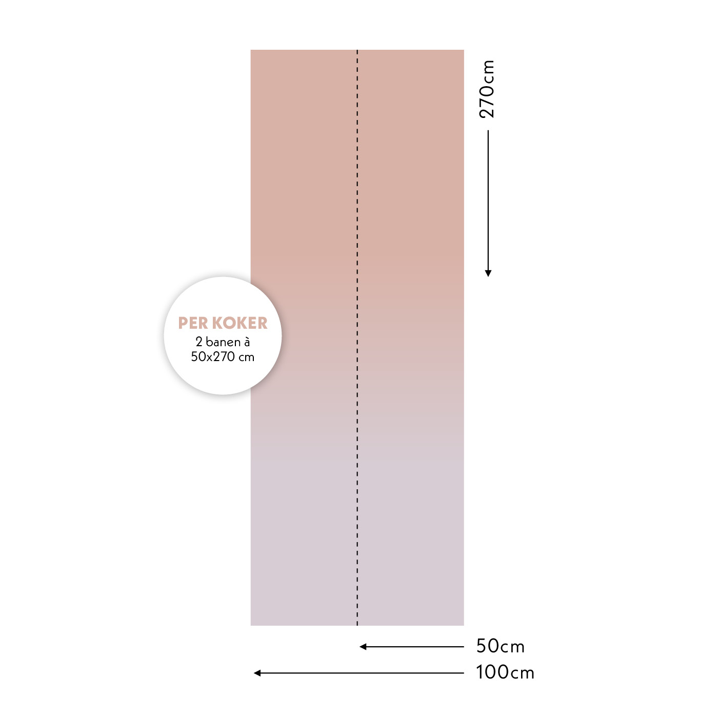 Iedere meter bestaat uit twee banen van 50cm breed en 270cm hoog. De kokers waarin de banen zitten zijn gemarkeerd met letters voor de opeenvolgende banen. Plak de banen naast elkaar voor een perfect naadloos en doorlopend patroon.