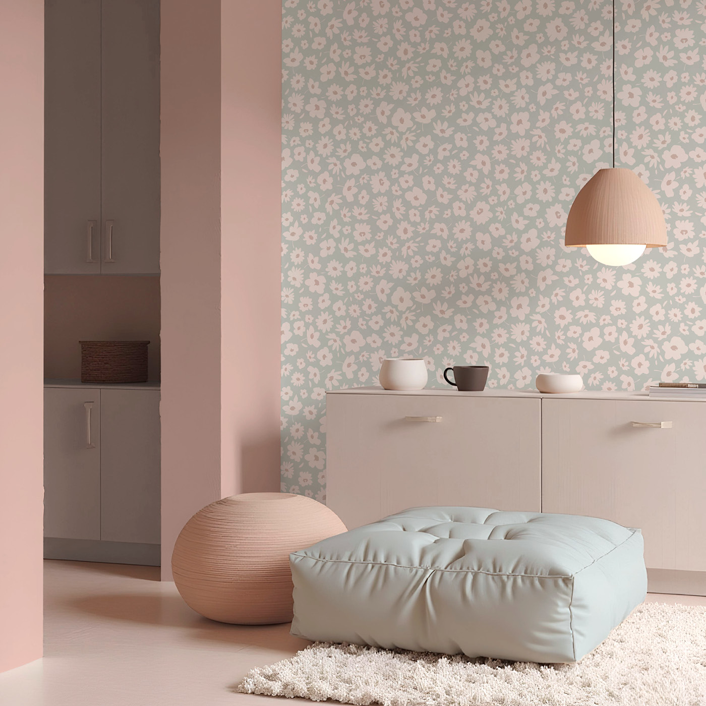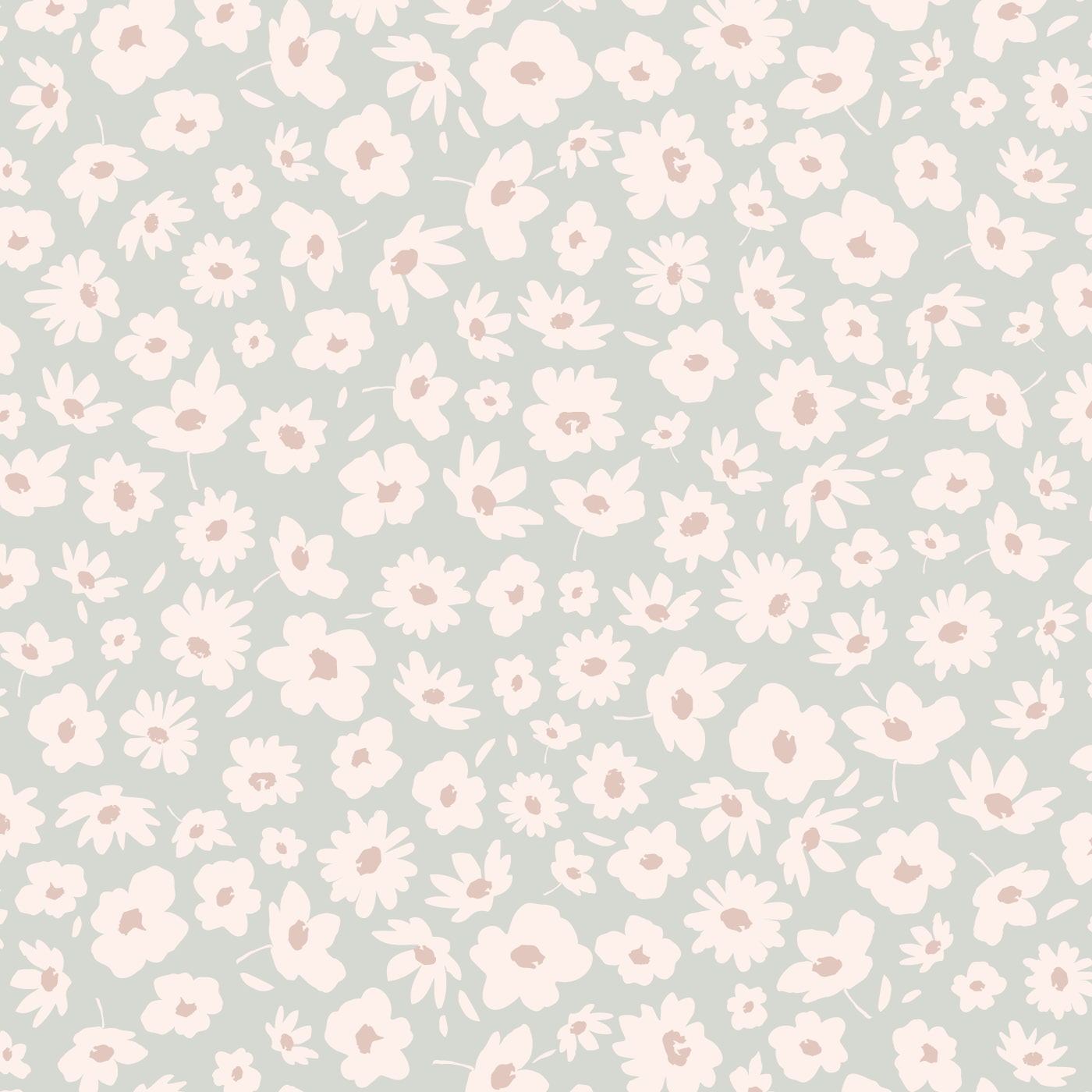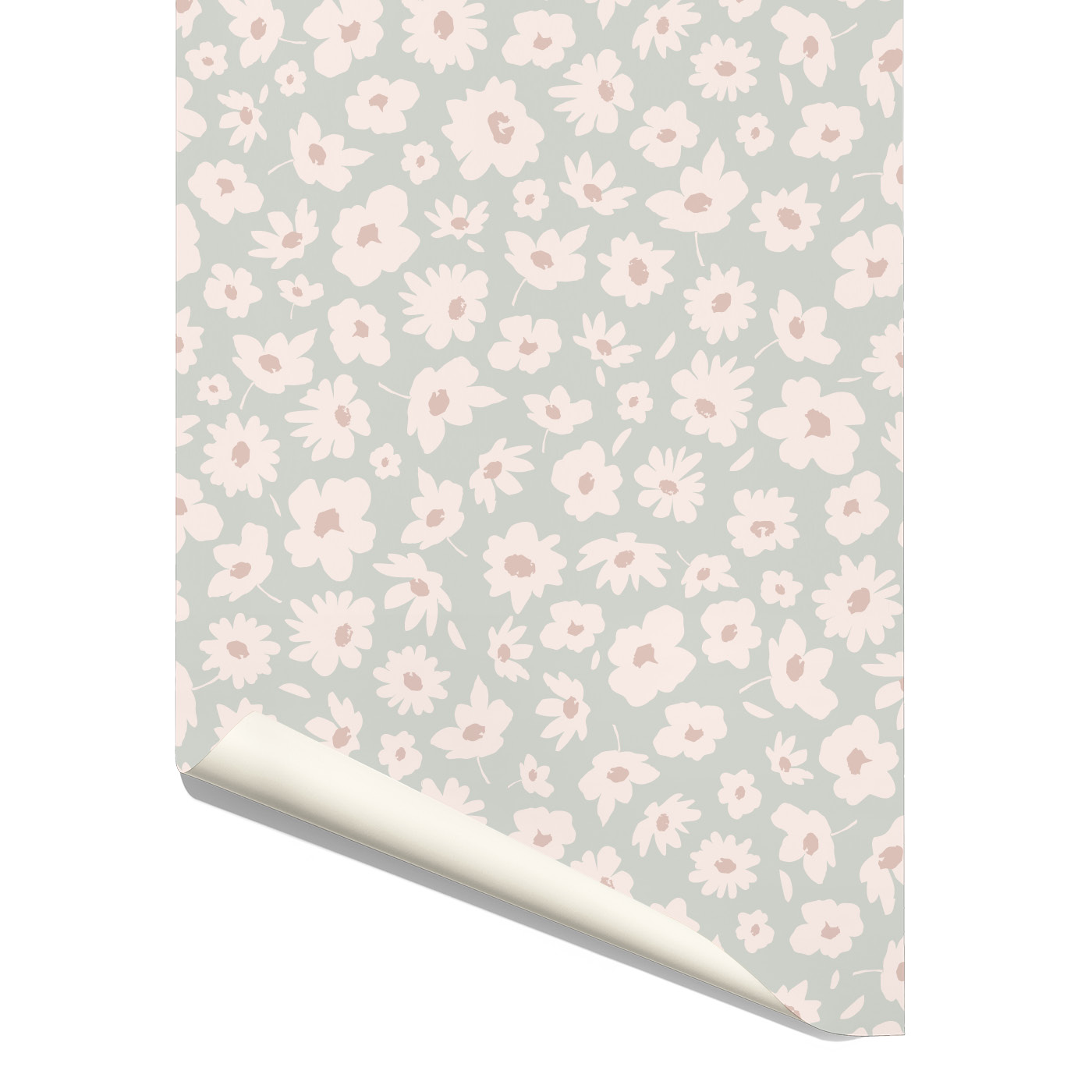 Behang Millefleurs 02. eucalyptus/warmbeige/klassiekroze