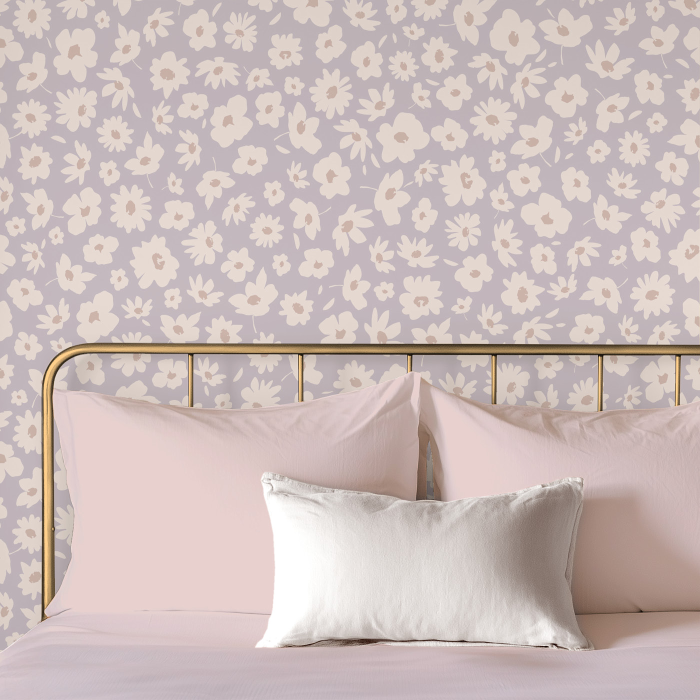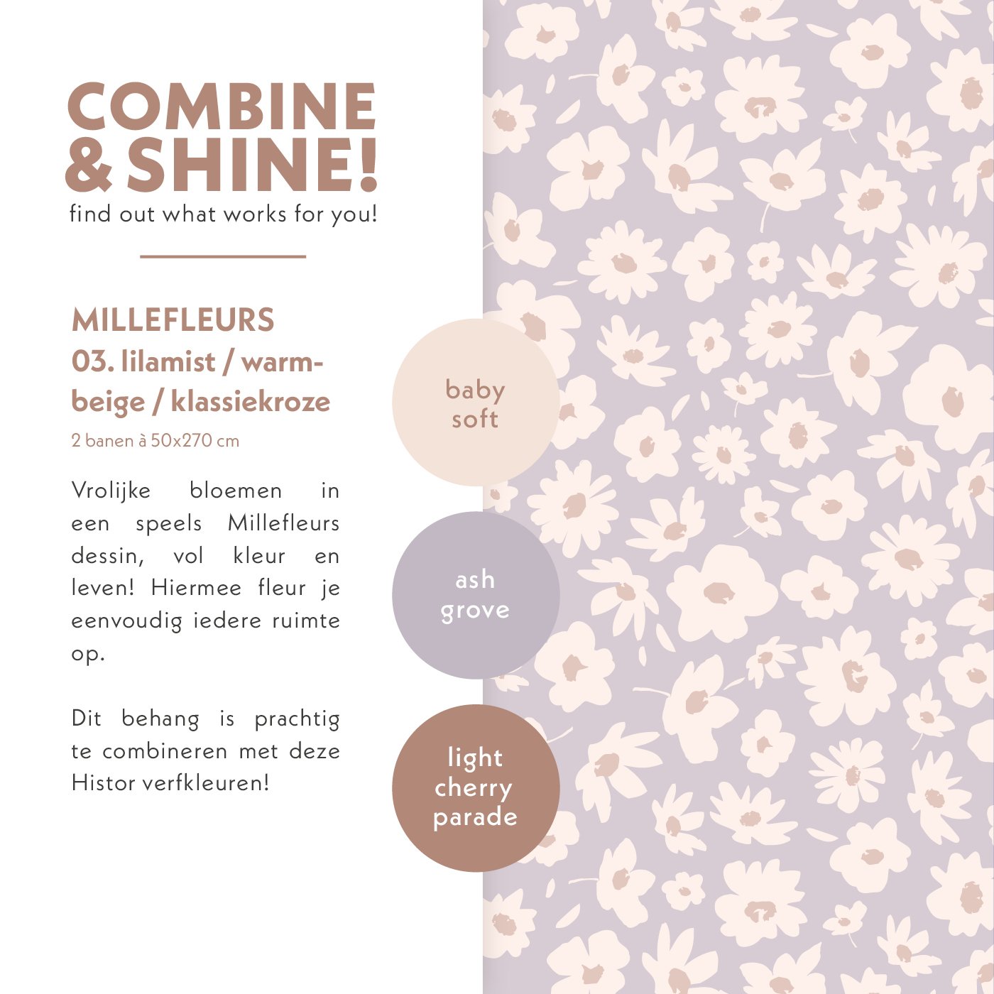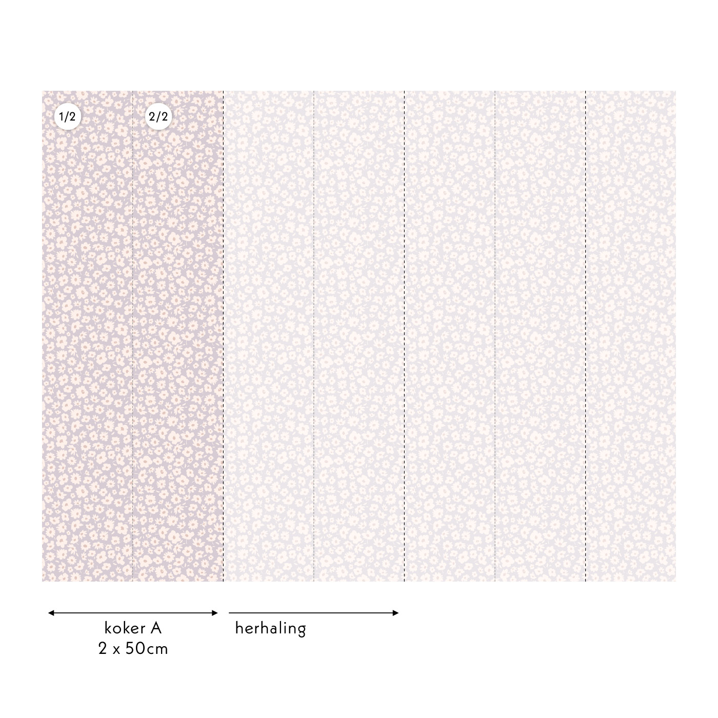 Behang Millefleurs 03. lilamist/warmbeige/klassiekroze