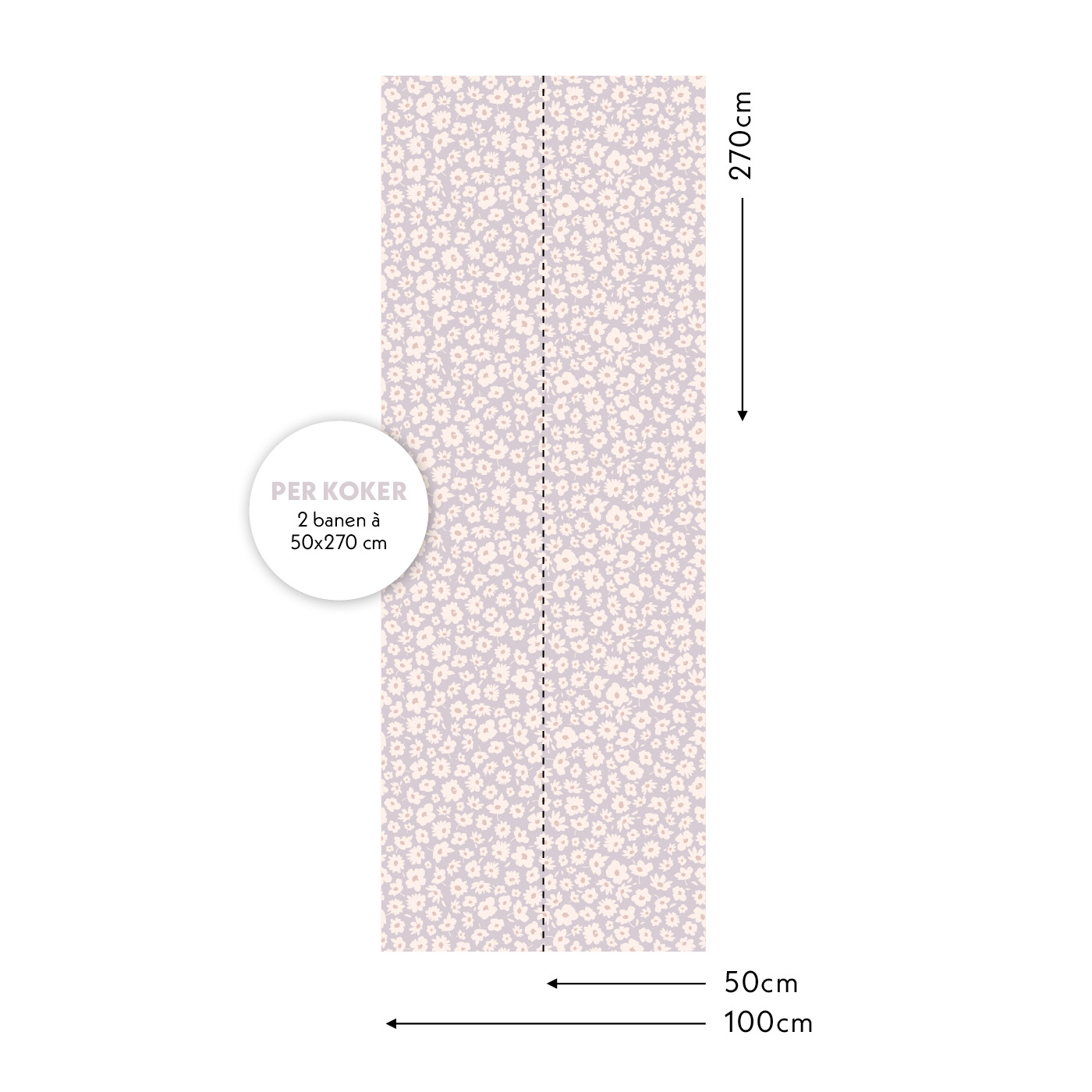 Iedere meter bestaat uit twee banen van 50cm breed en 270cm hoog. De kokers waarin de banen zitten zijn gemarkeerd met letters voor de opeenvolgende banen. Plak de banen naast elkaar voor een perfect naadloos en doorlopend patroon.