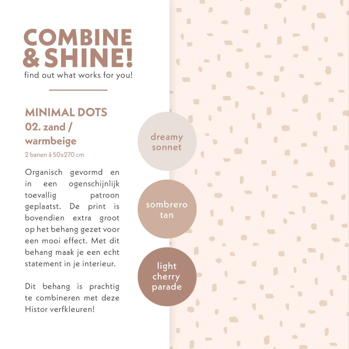 Hoe leuk zijn deze Minimal Dots! Organisch gevormd en in een ogenschijnlijk toevallig patroon geplaatst. De print is bovendien extra groot op het behang gezet voor een mooi effect. Met dit behang maak je een echt statement in je interieur.