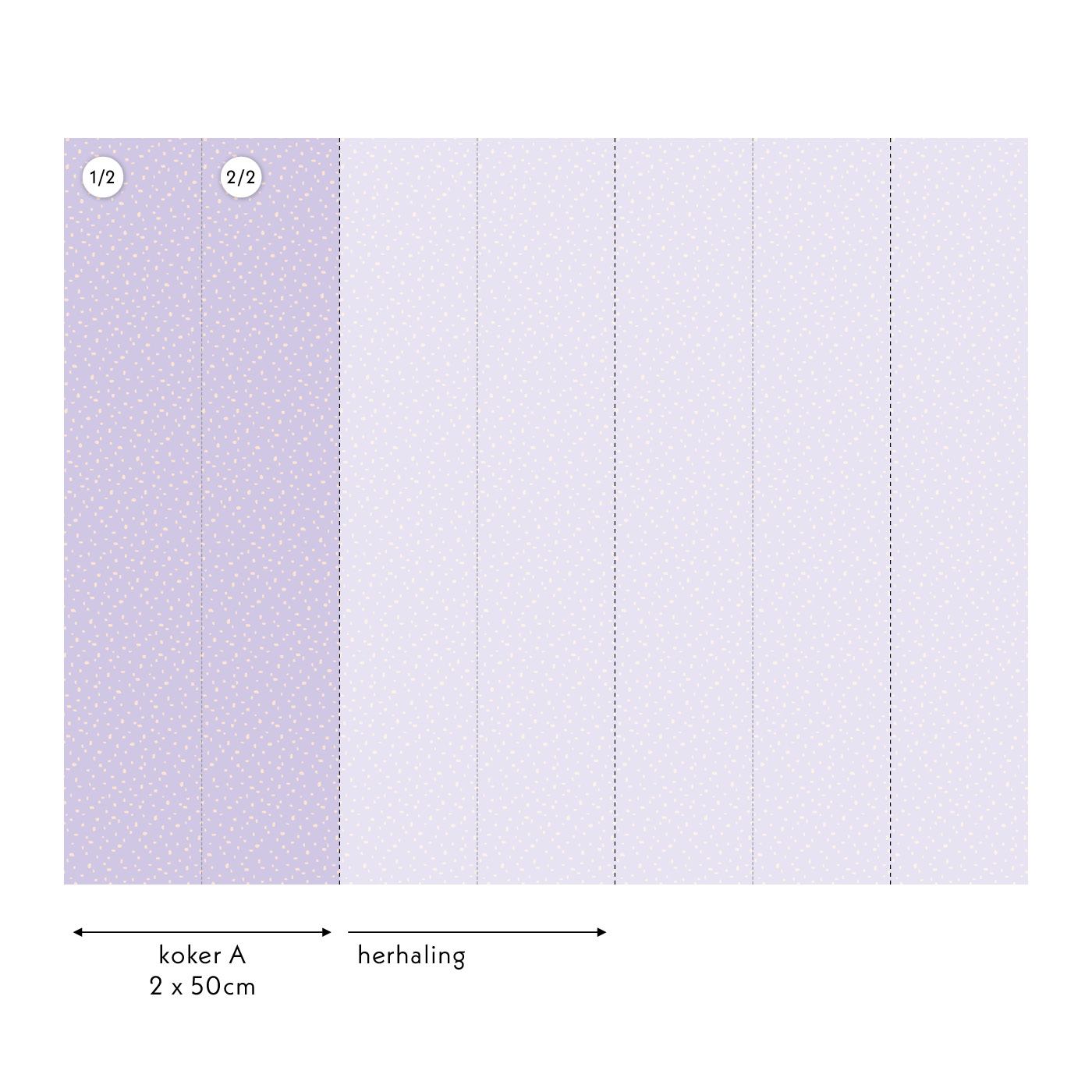 Iedere meter bestaat uit twee banen van 50cm breed en 270cm hoog. De kokers waarin de banen zitten zijn gemarkeerd met letters voor de opeenvolgende banen. Plak de banen naast elkaar voor een perfect naadloos en doorlopend patroon.