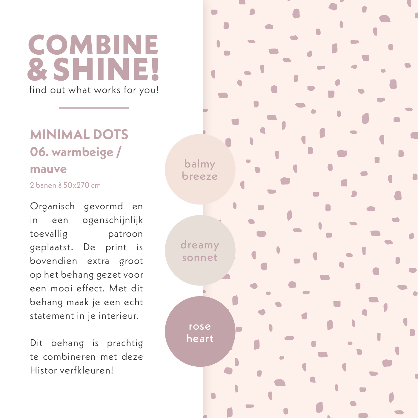 Hoe leuk zijn deze Minimal Dots! Organisch gevormd en in een ogenschijnlijk toevallig patroon geplaatst. De print is bovendien extra groot op het behang gezet voor een mooi effect. Met dit behang maak je een echt statement in je interieur.