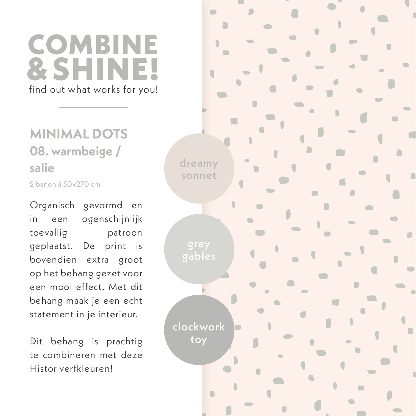 Hoe leuk zijn deze Minimal Dots! Organisch gevormd en in een ogenschijnlijk toevallig patroon geplaatst. De print is bovendien extra groot op het behang gezet voor een mooi effect. Met dit behang maak je een echt statement in je interieur.