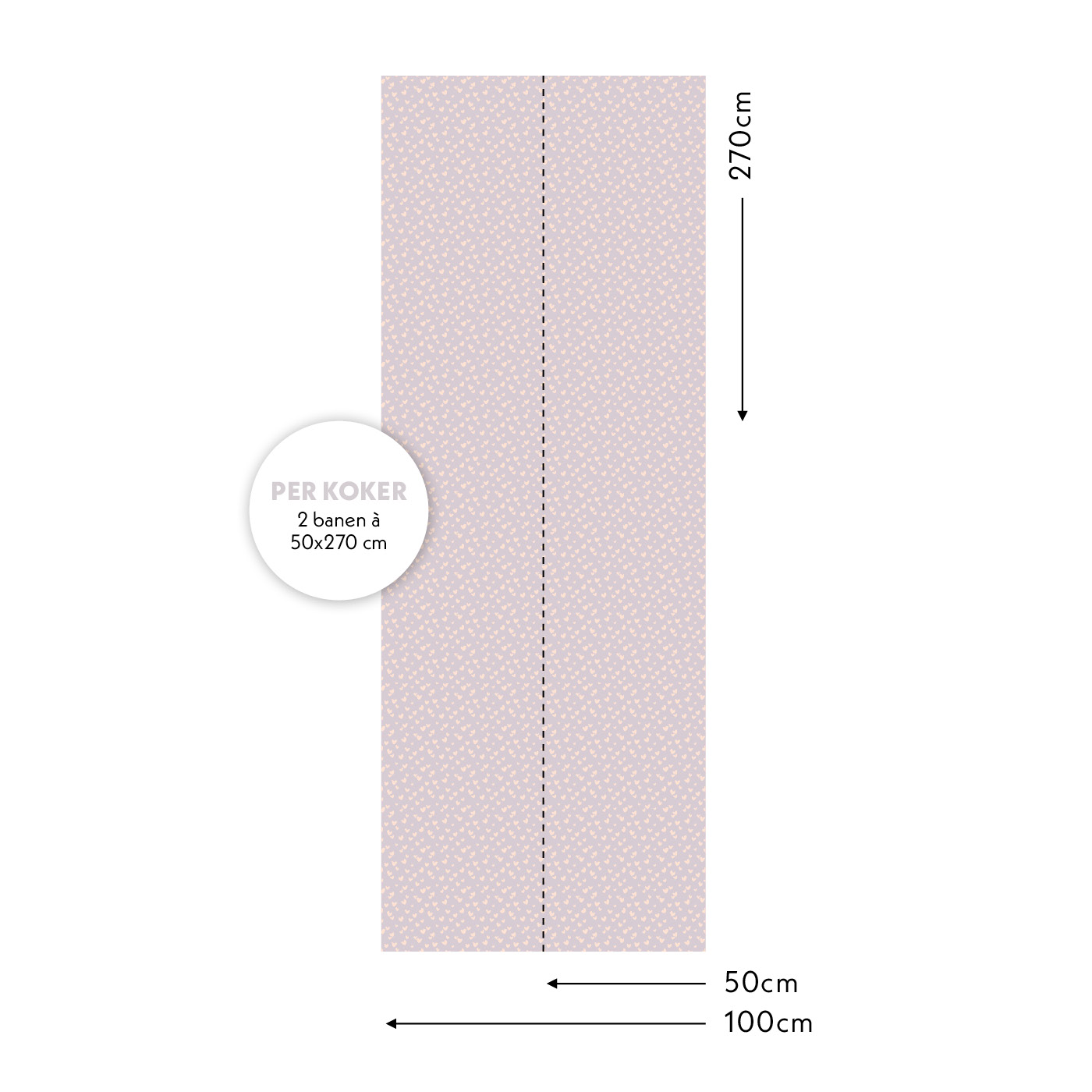 Iedere meter bestaat uit twee banen van 50cm breed en 270cm hoog. De kokers waarin de banen zitten zijn gemarkeerd met letters voor de opeenvolgende banen. Plak de banen naast elkaar voor een perfect naadloos en doorlopend patroon.
