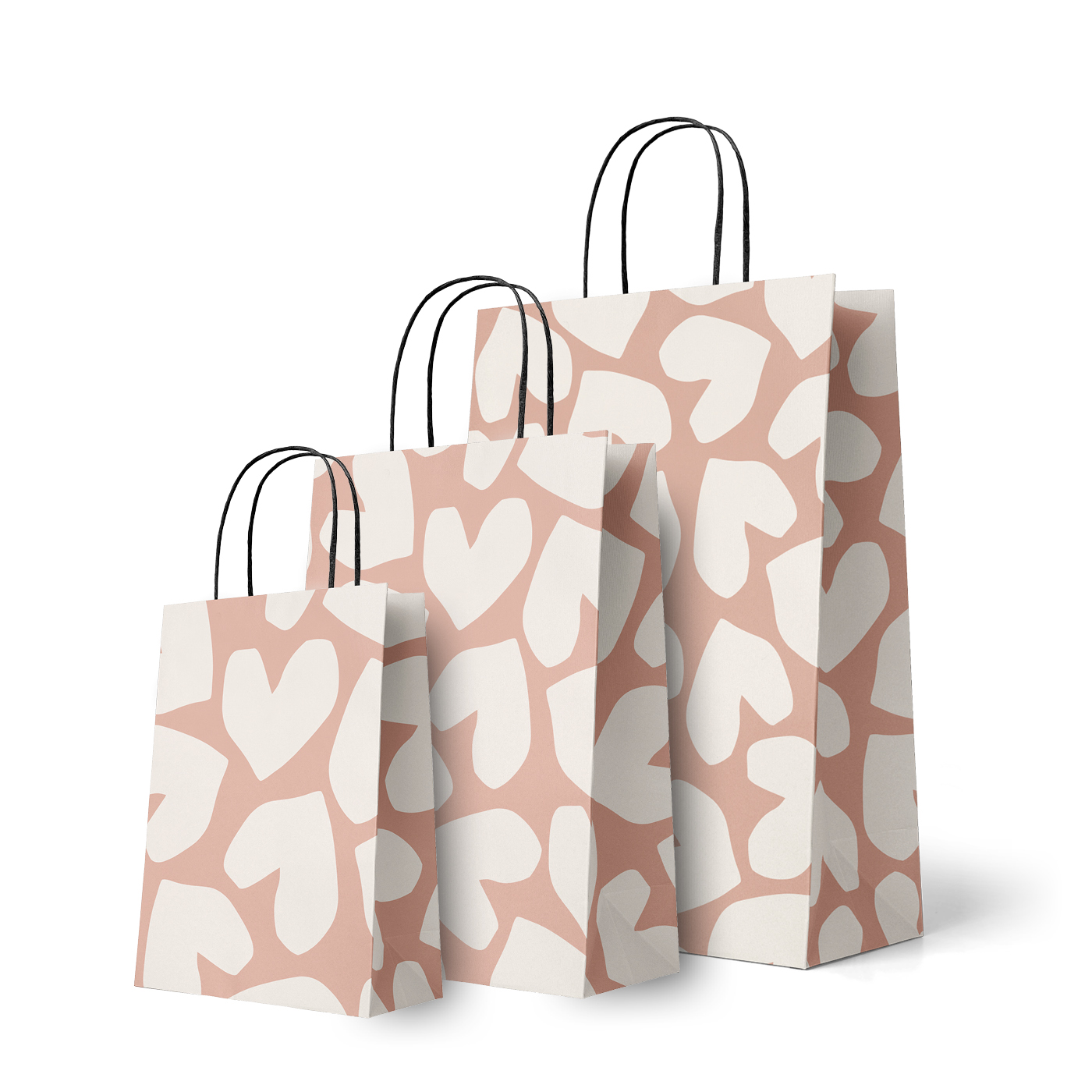Deze tassen zijn gemaakt van heel stevig (120 grams) FSC papier en uitgevoerd met een gedraaid papieren handvat. Verpakt per 25 stuks, verkrijgbaar in verschillende dessins en in 3 maten.